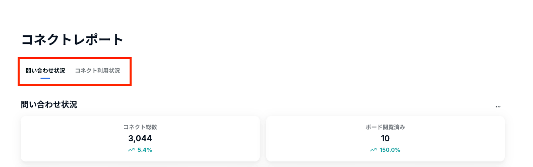 コネクト問い合わせレポートの上部では、以下の主要な指標を確認できます。