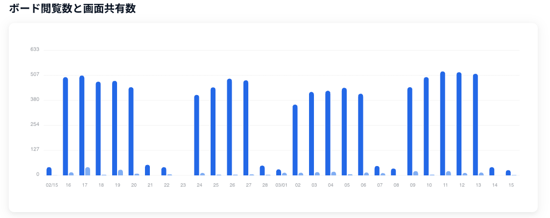 コネクトボード閲覧数と画面共有数を日別または月別で確認できます。