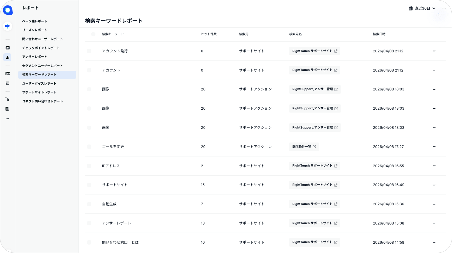 検索キーワードレポートを追加し、サポートアクションやサポートサイトでの検索キーワードを一覧で確認できるようになりました!